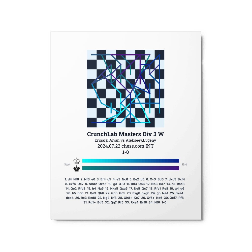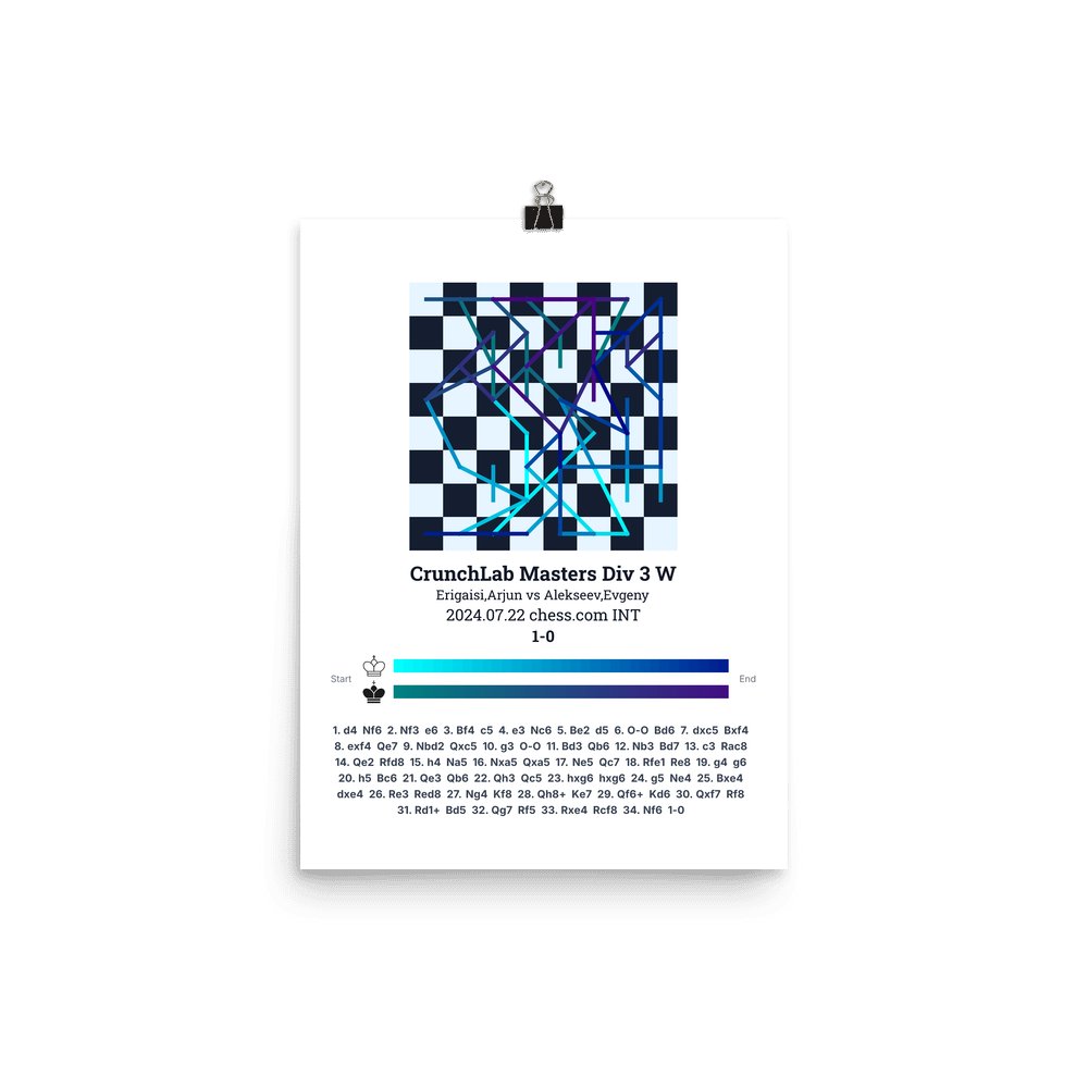 Museum-quality poster on thick, durable matte paper. A sharp, clean look for any chess visualisation.