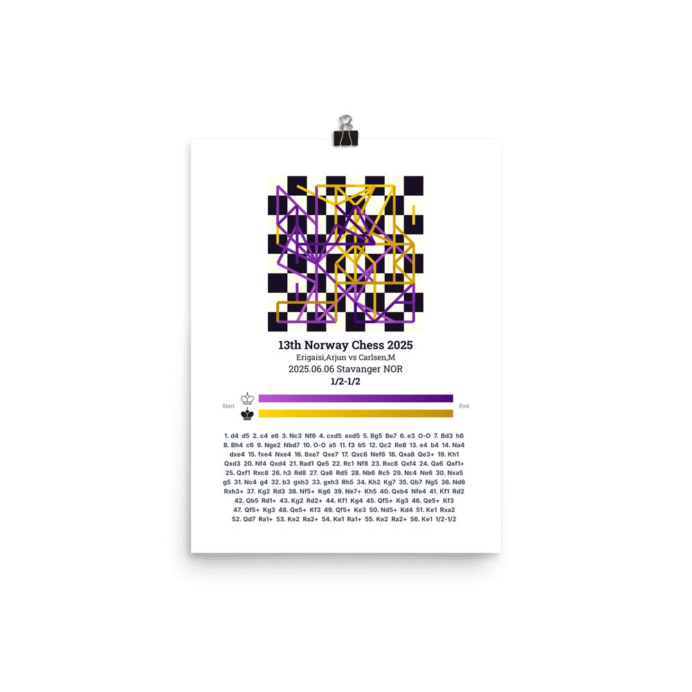 Museum-quality poster on thick, durable matte paper. A sharp, clean look for any chess visualisation.