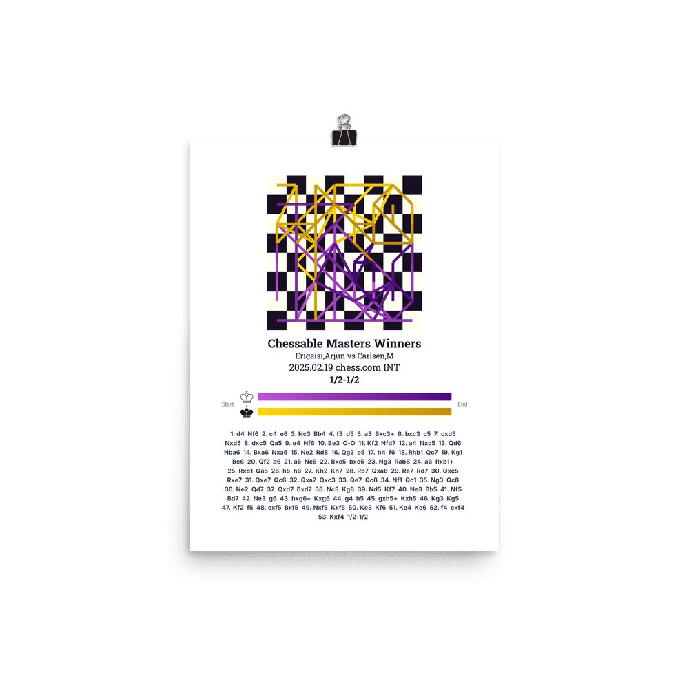 Museum-quality poster on thick, durable matte paper. A sharp, clean look for any chess visualisation.