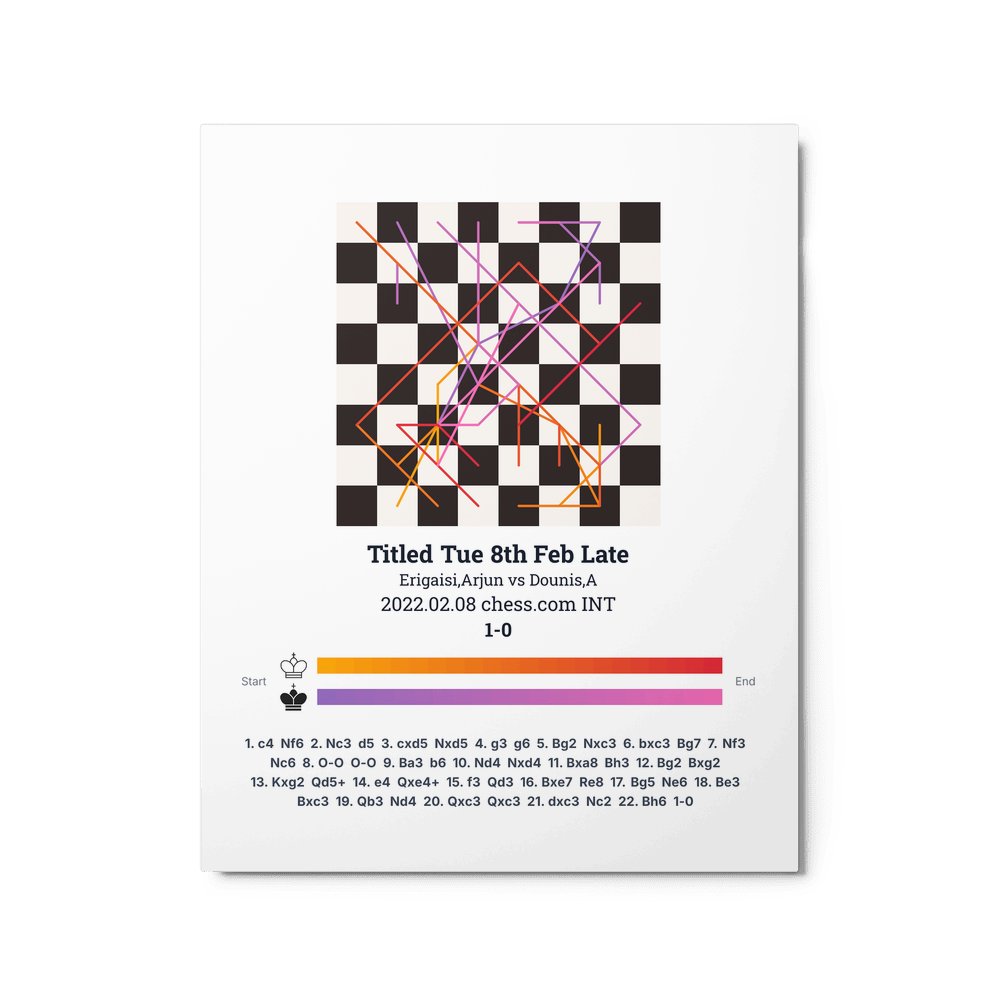 Museum-quality poster on thick, durable matte paper. A sharp, clean look for any chess visualisation.