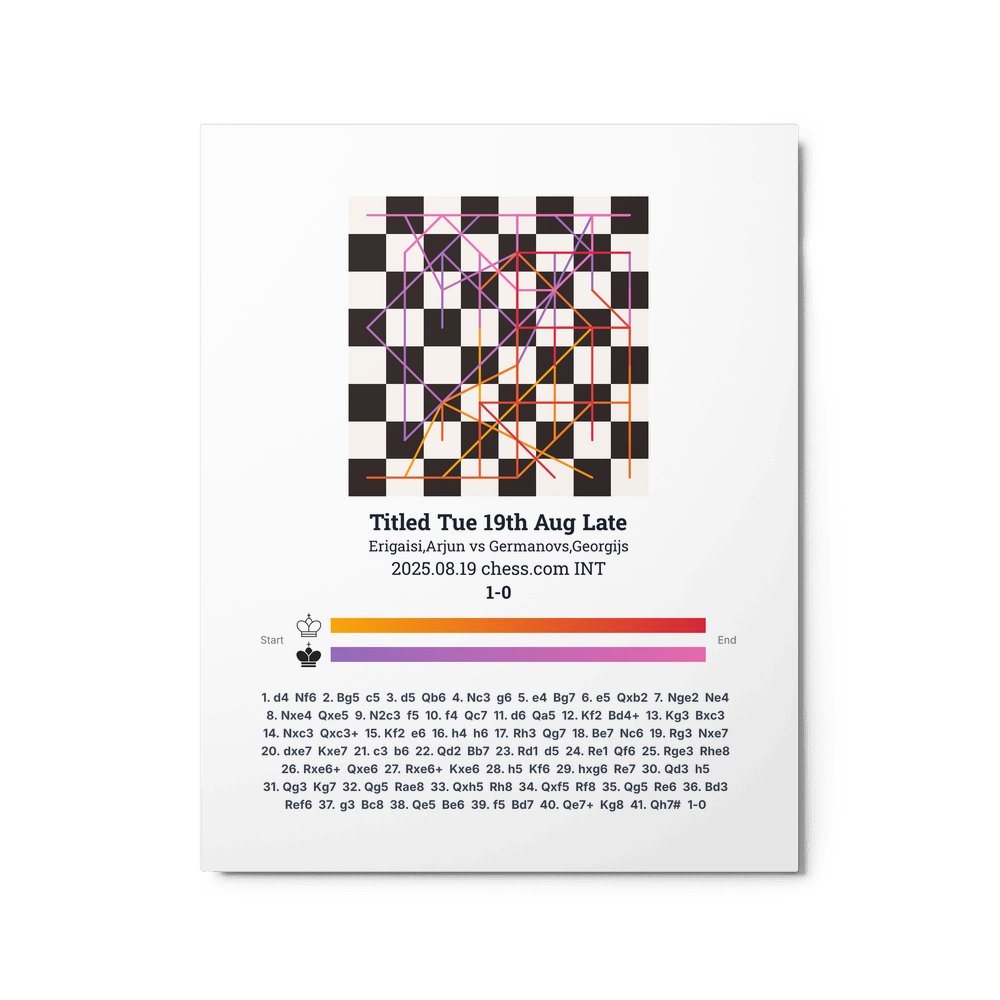 Museum-quality poster on thick, durable matte paper. A sharp, clean look for any chess visualisation.