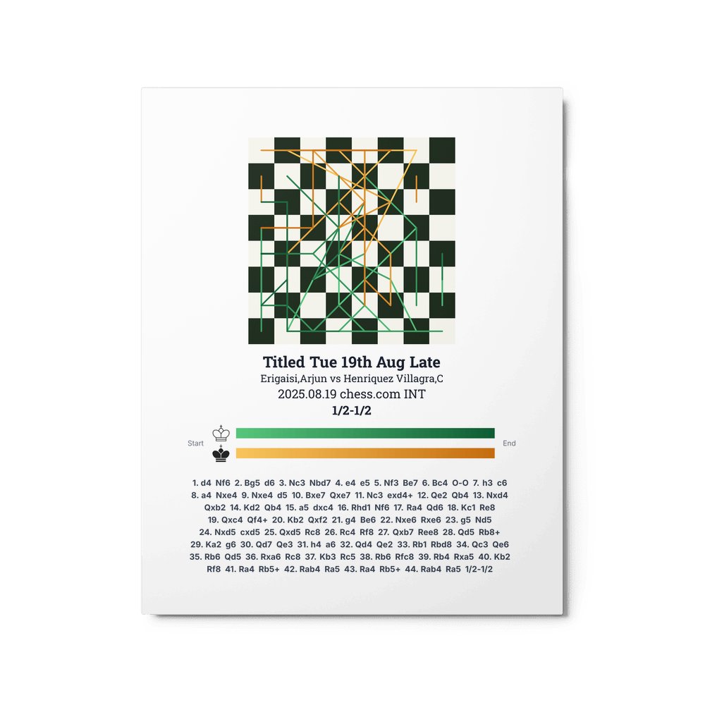 Museum-quality poster on thick, durable matte paper. A sharp, clean look for any chess visualisation.