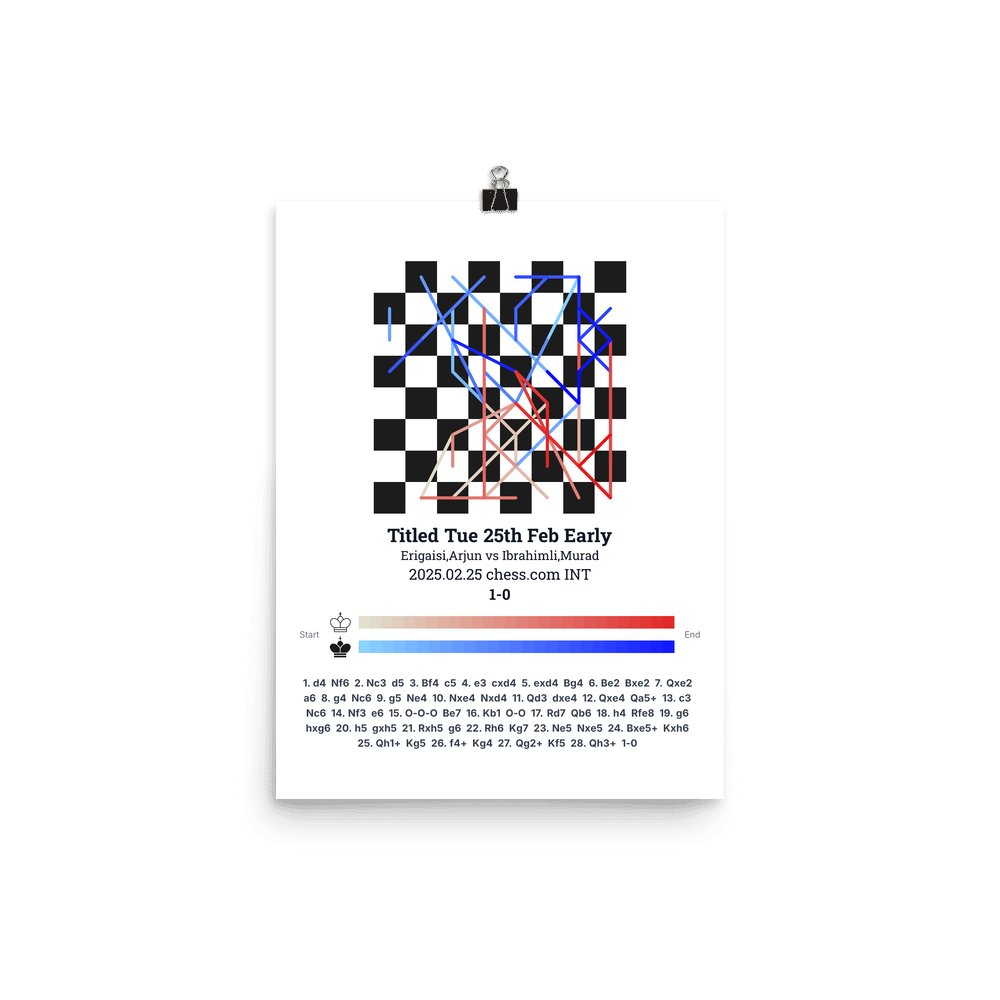 Museum-quality poster on thick, durable matte paper. A sharp, clean look for any chess visualisation.