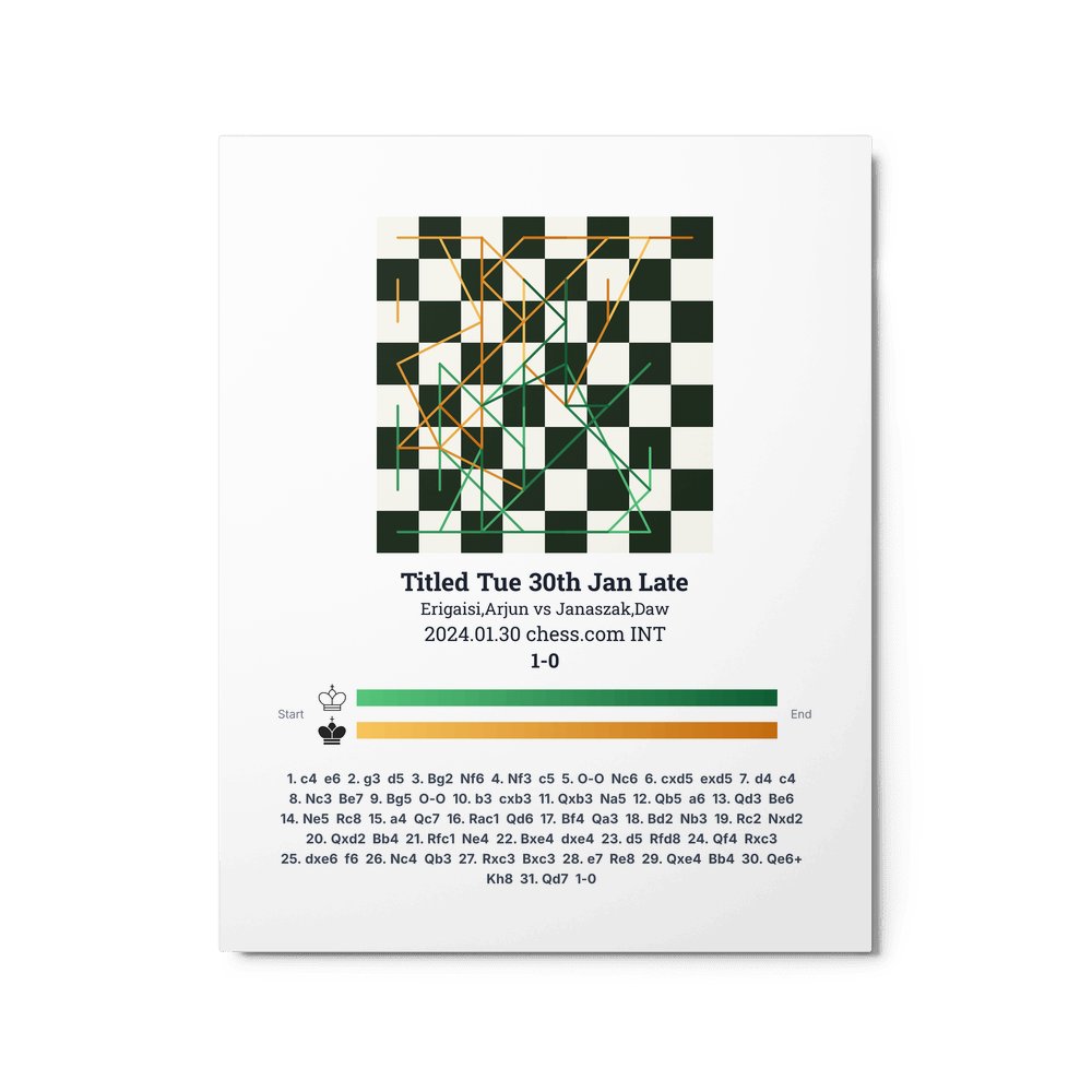 Museum-quality poster on thick, durable matte paper. A sharp, clean look for any chess visualisation.