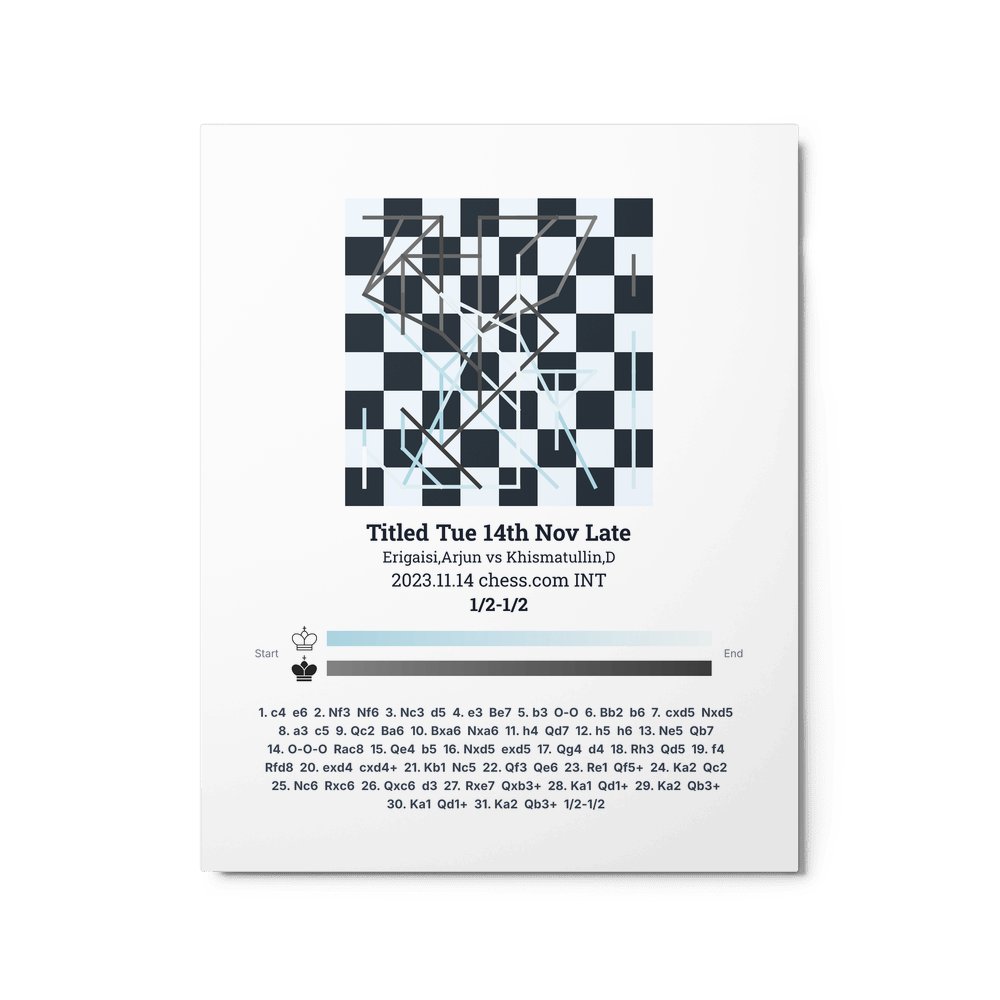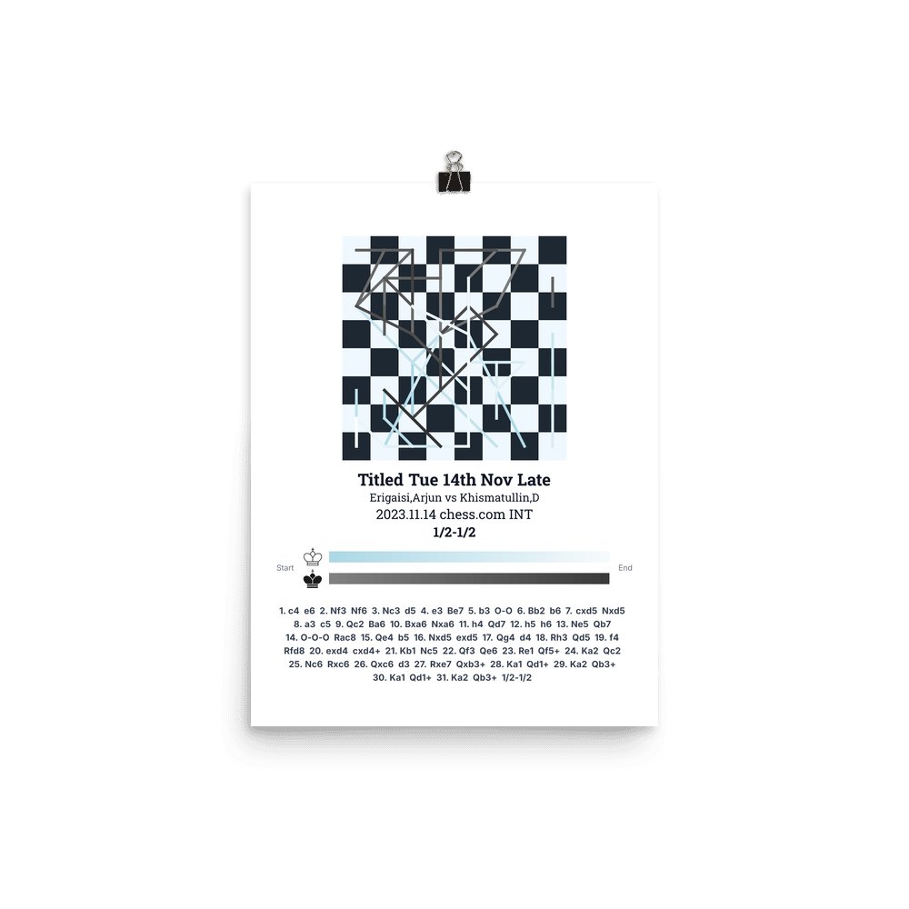 Museum-quality poster on thick, durable matte paper. A sharp, clean look for any chess visualisation.