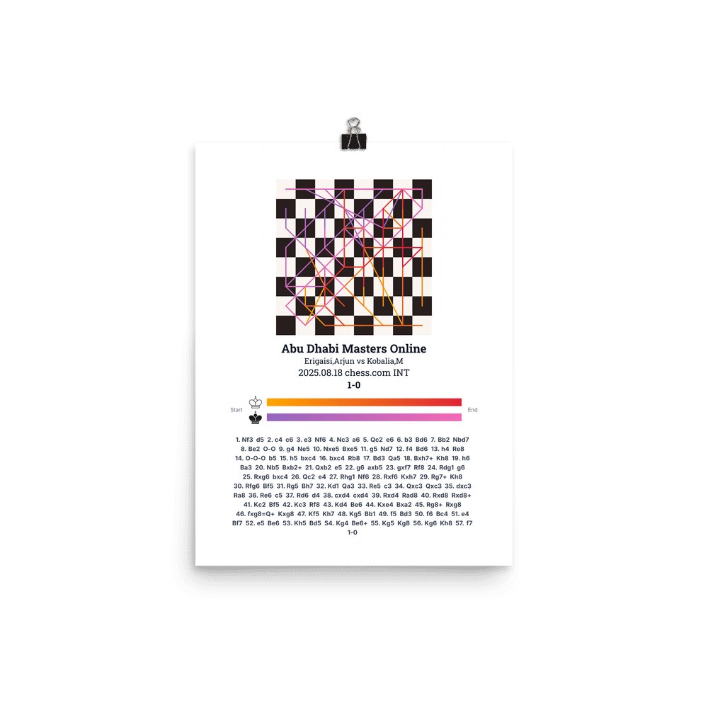 Museum-quality poster on thick, durable matte paper. A sharp, clean look for any chess visualisation.