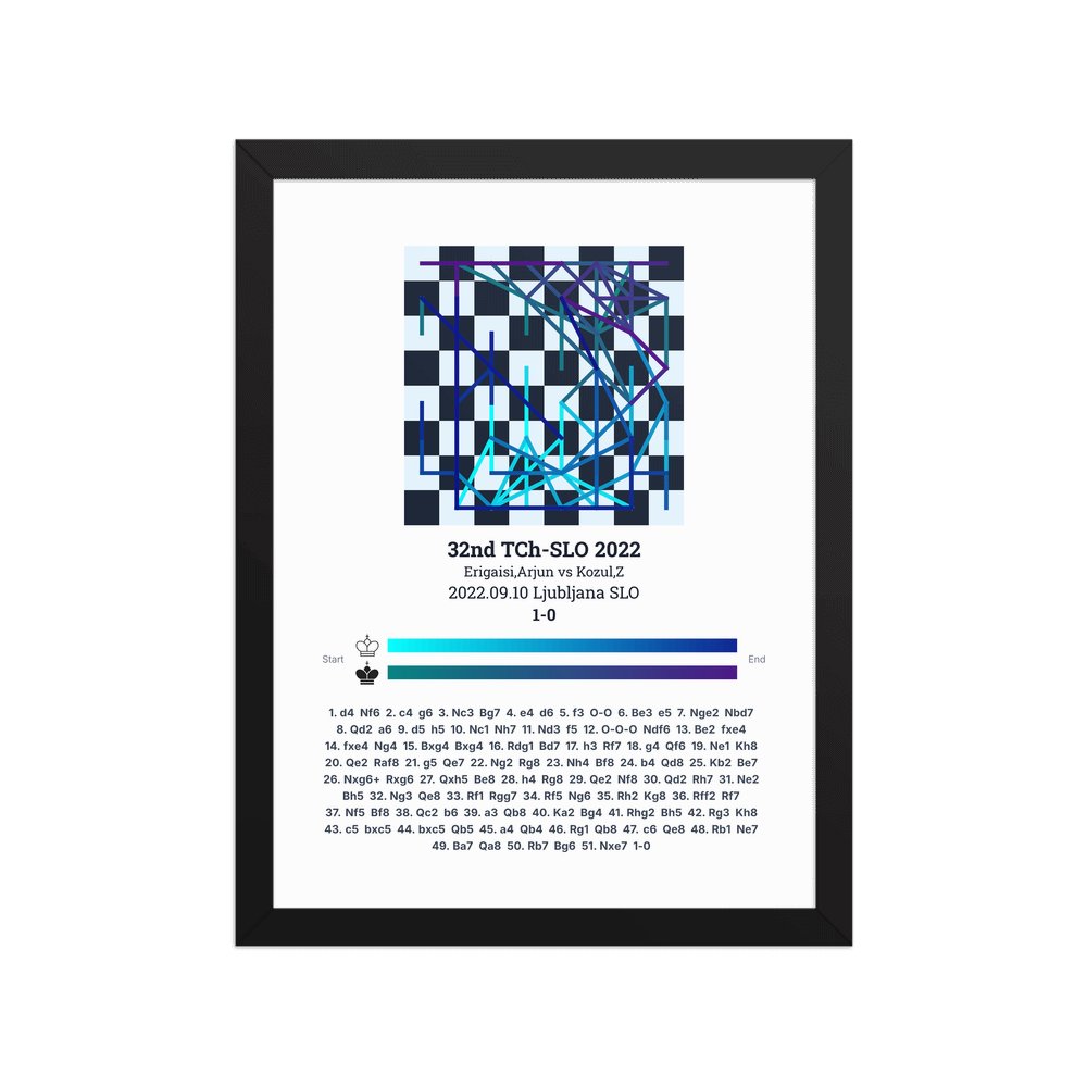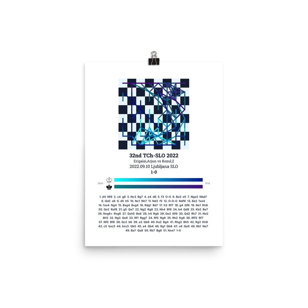 Museum-quality poster on thick, durable matte paper. A sharp, clean look for any chess visualisation.