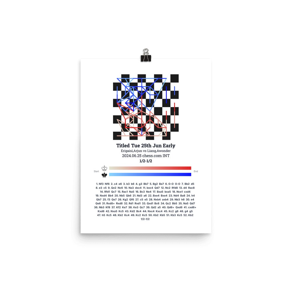 Museum-quality poster on thick, durable matte paper. A sharp, clean look for any chess visualisation.