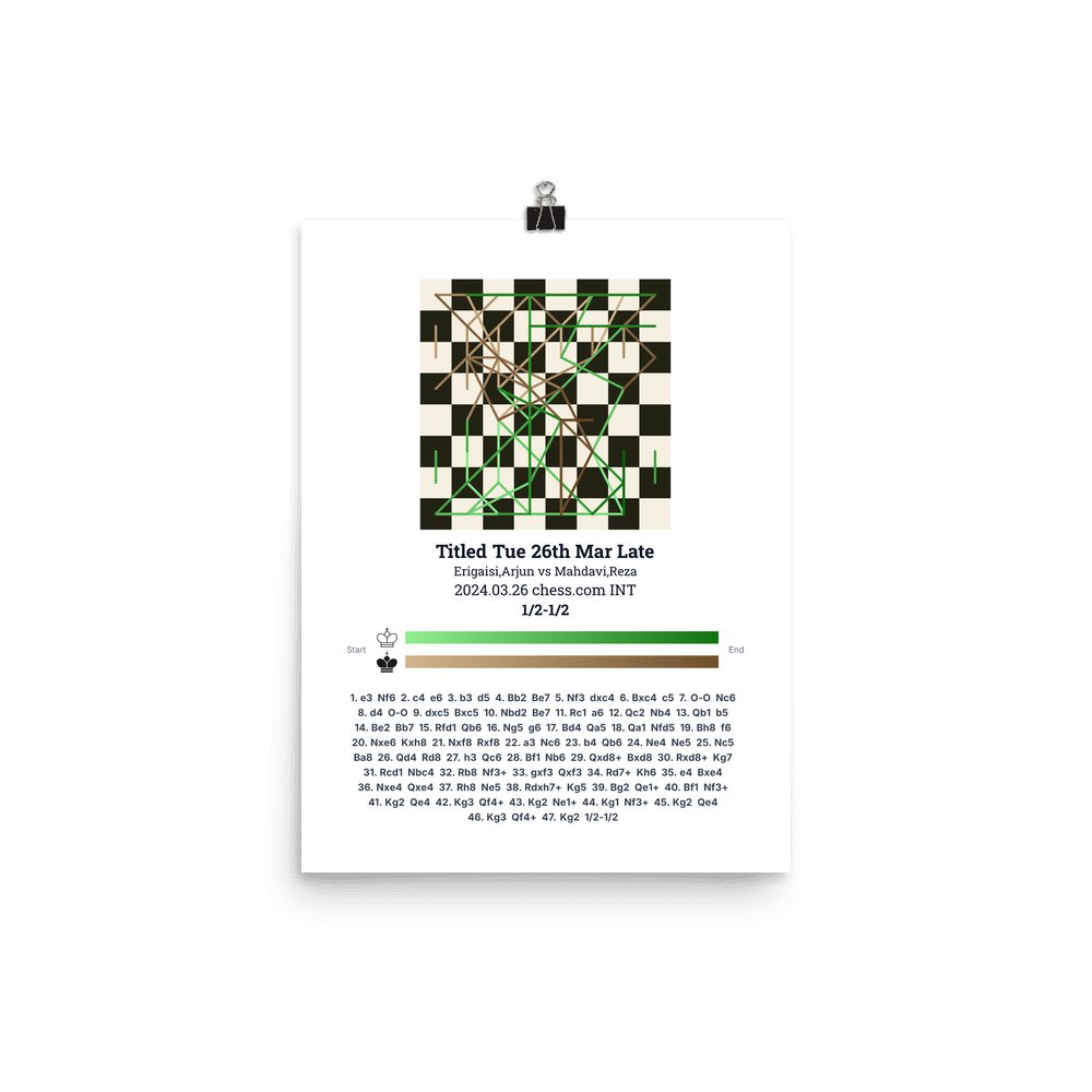 Museum-quality poster on thick, durable matte paper. A sharp, clean look for any chess visualisation.
