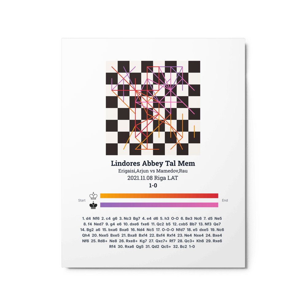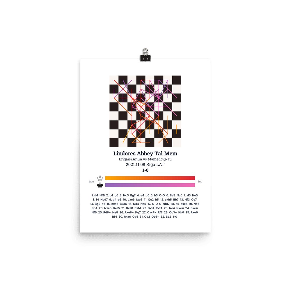 Museum-quality poster on thick, durable matte paper. A sharp, clean look for any chess visualisation.
