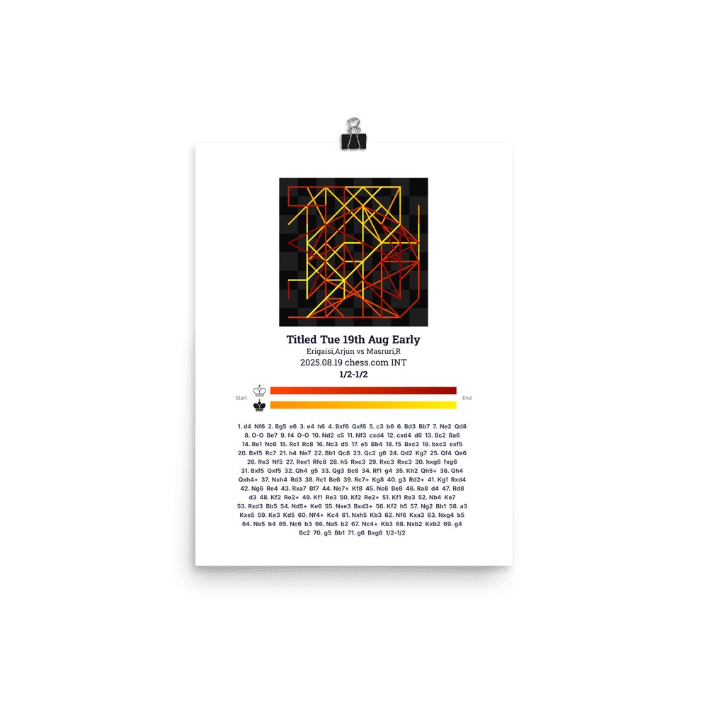 Museum-quality poster on thick, durable matte paper. A sharp, clean look for any chess visualisation.