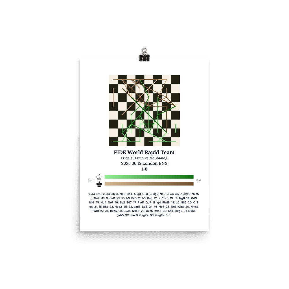 Museum-quality poster on thick, durable matte paper. A sharp, clean look for any chess visualisation.