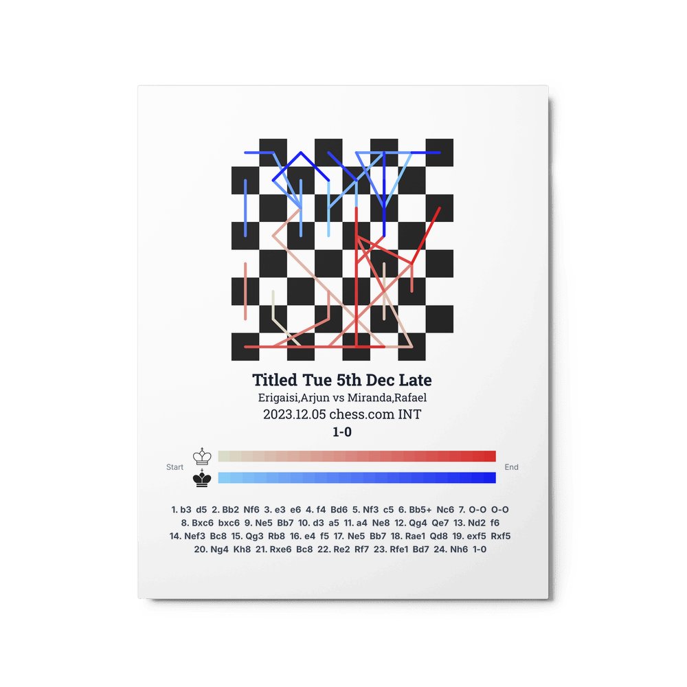 Museum-quality poster on thick, durable matte paper. A sharp, clean look for any chess visualisation.