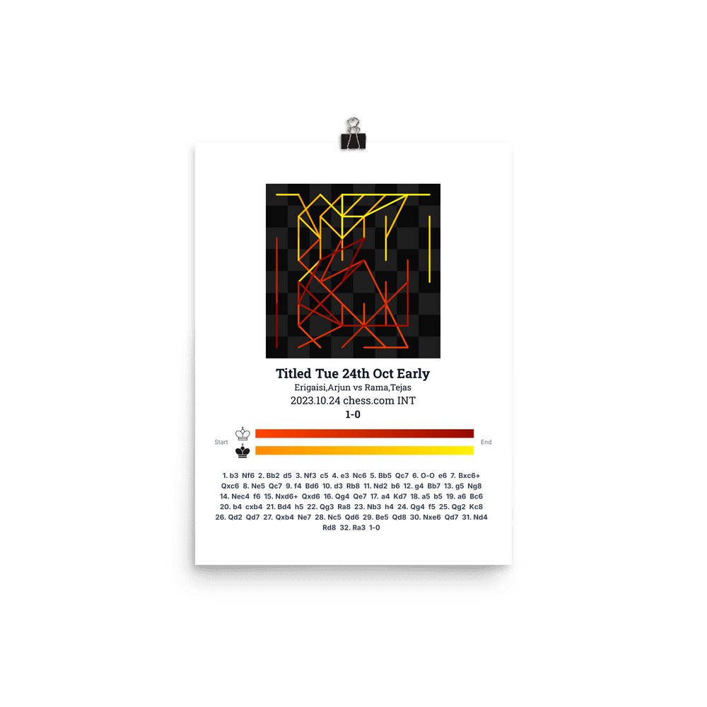 Museum-quality poster on thick, durable matte paper. A sharp, clean look for any chess visualisation.