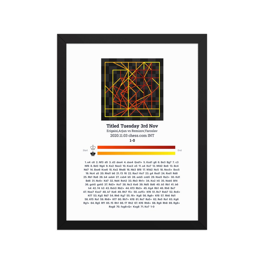 Museum-quality poster on thick, durable matte paper. A sharp, clean look for any chess visualisation.