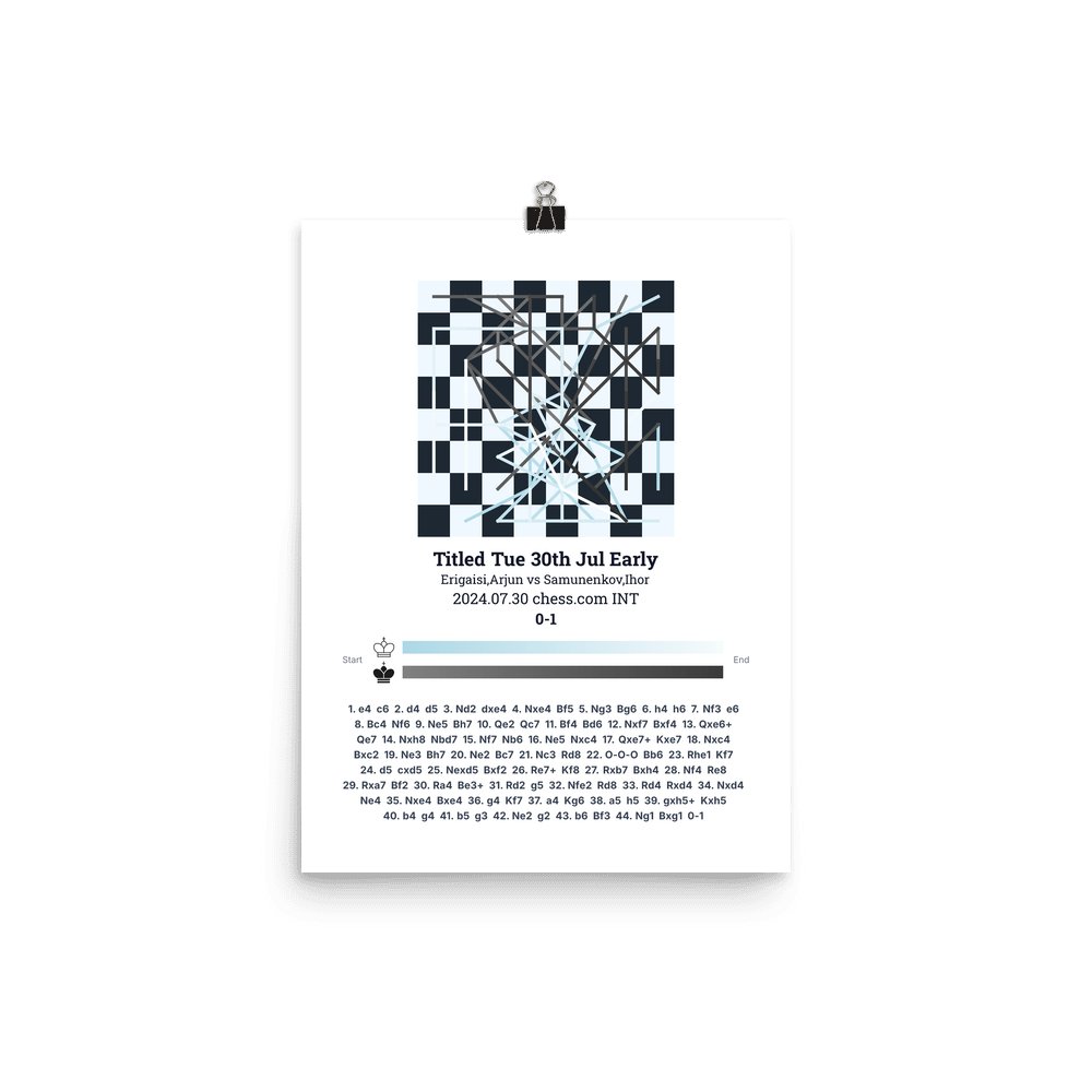 Museum-quality poster on thick, durable matte paper. A sharp, clean look for any chess visualisation.