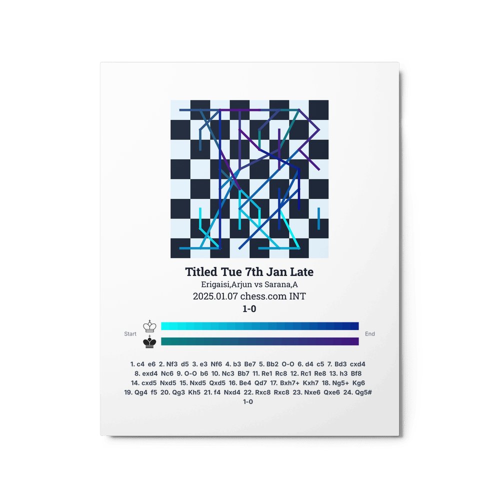 Museum-quality poster on thick, durable matte paper. A sharp, clean look for any chess visualisation.