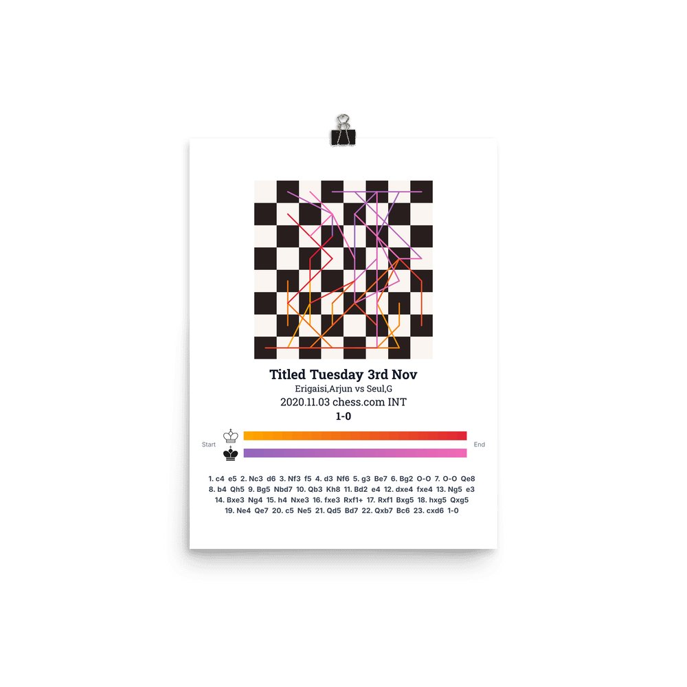 Museum-quality poster on thick, durable matte paper. A sharp, clean look for any chess visualisation.