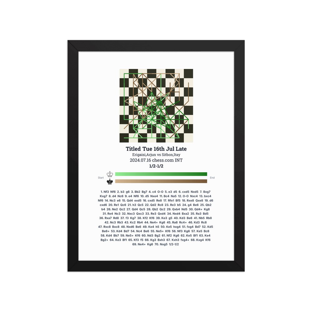 Museum-quality poster on thick, durable matte paper. A sharp, clean look for any chess visualisation.