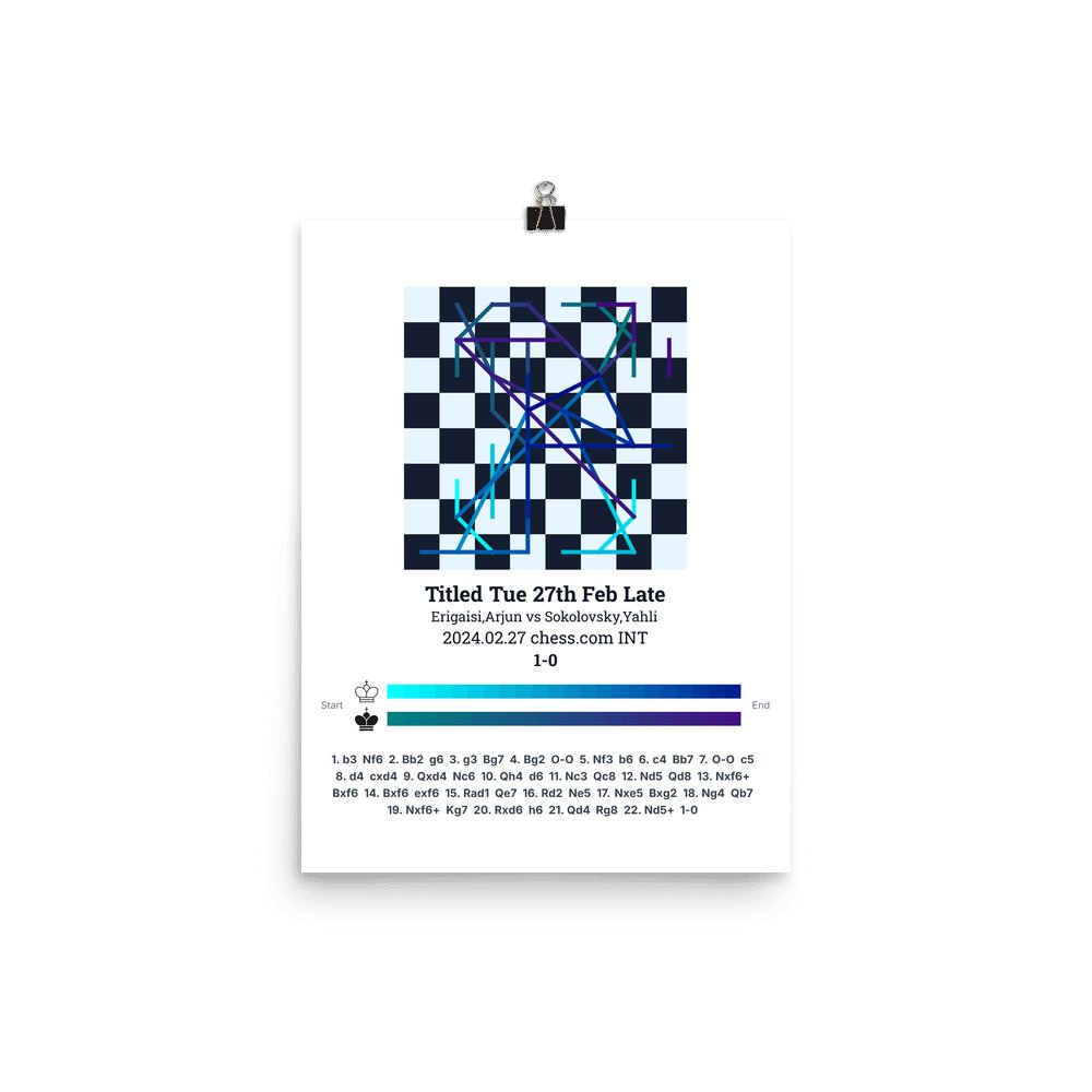 Museum-quality poster on thick, durable matte paper. A sharp, clean look for any chess visualisation.