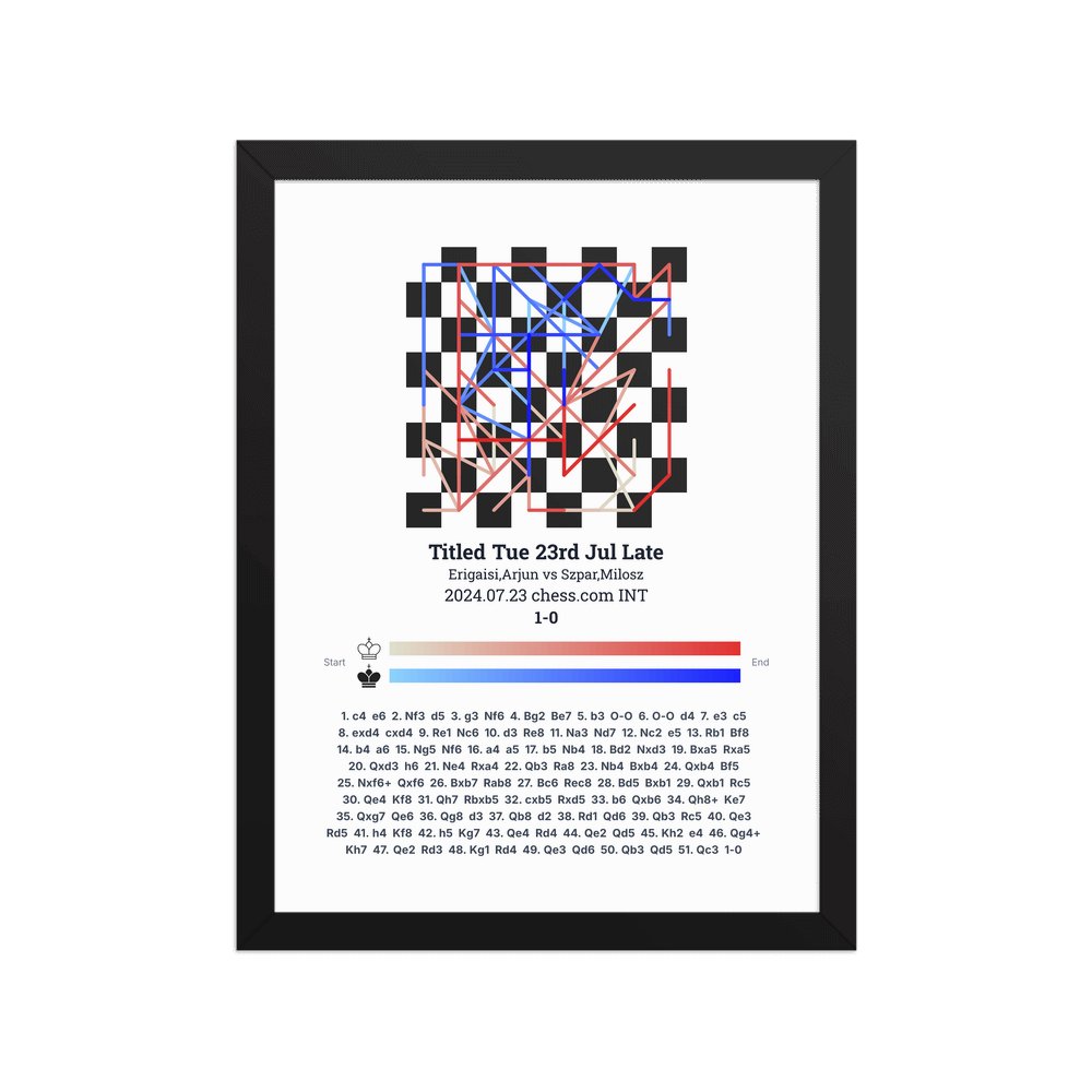 Museum-quality poster on thick, durable matte paper. A sharp, clean look for any chess visualisation.