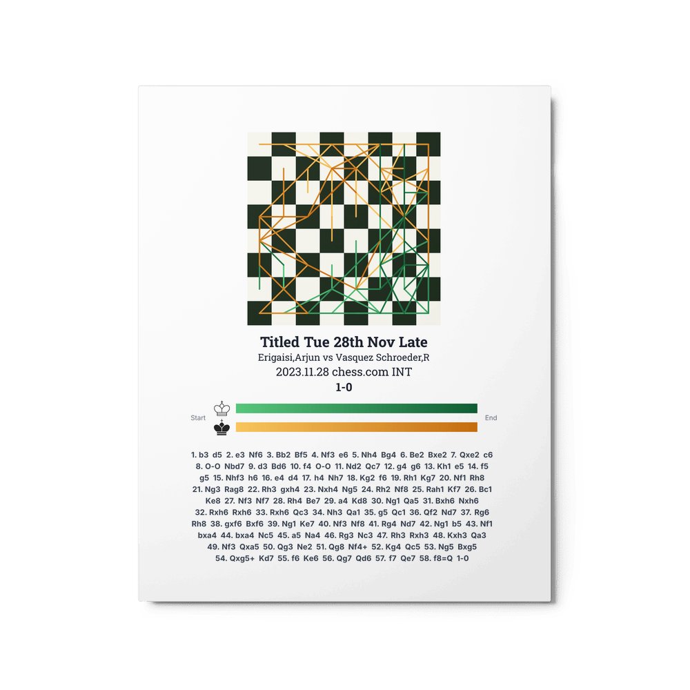 Museum-quality poster on thick, durable matte paper. A sharp, clean look for any chess visualisation.