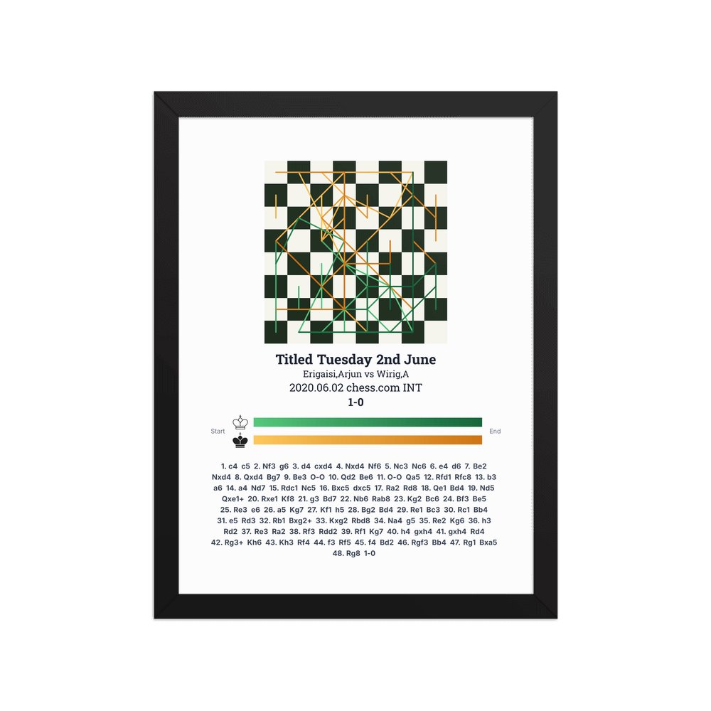 Museum-quality poster on thick, durable matte paper. A sharp, clean look for any chess visualisation.