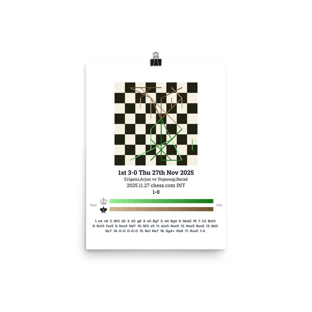 Museum-quality poster on thick, durable matte paper. A sharp, clean look for any chess visualisation.