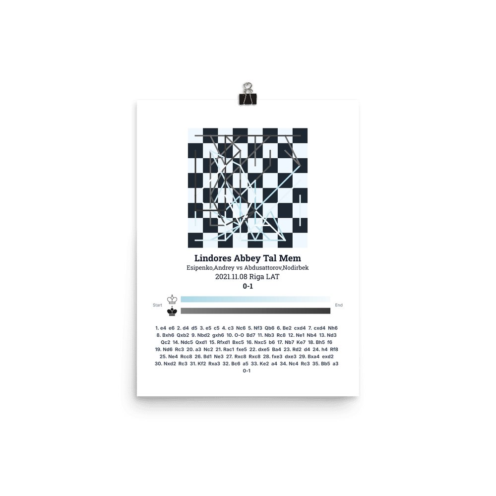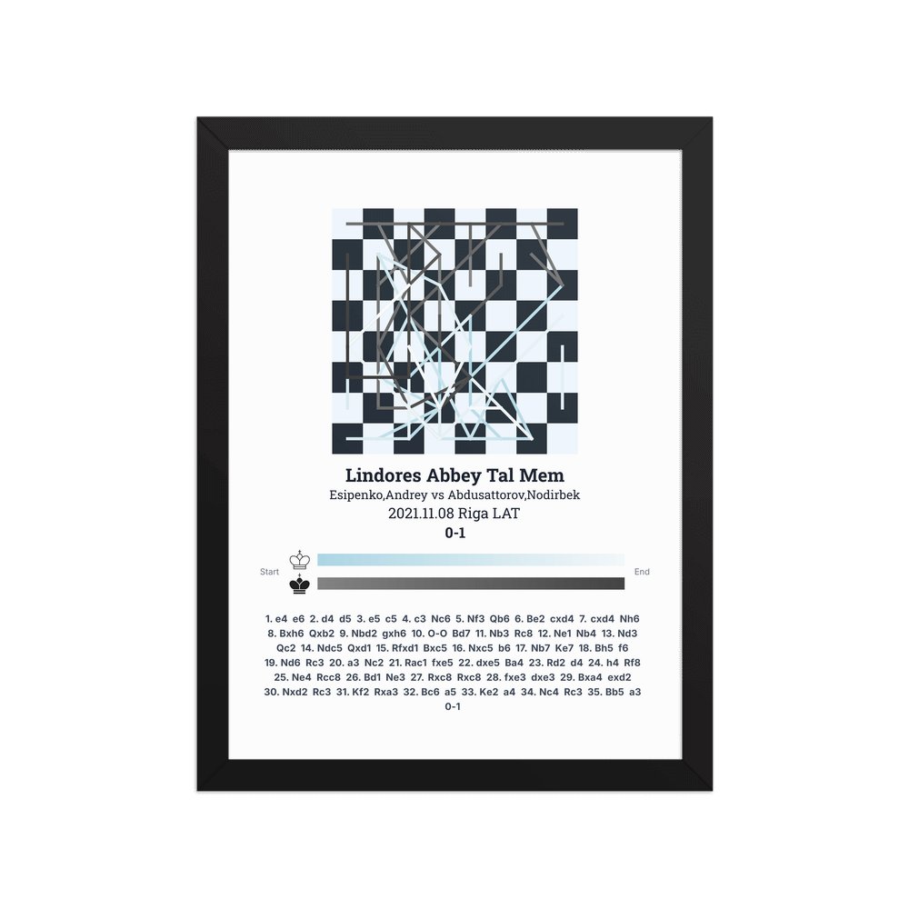 Museum-quality poster on thick, durable matte paper. A sharp, clean look for any chess visualisation.