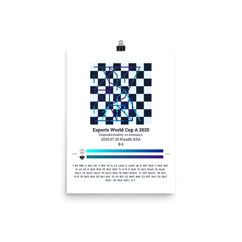 Museum-quality poster on thick, durable matte paper. A sharp, clean look for any chess visualisation.