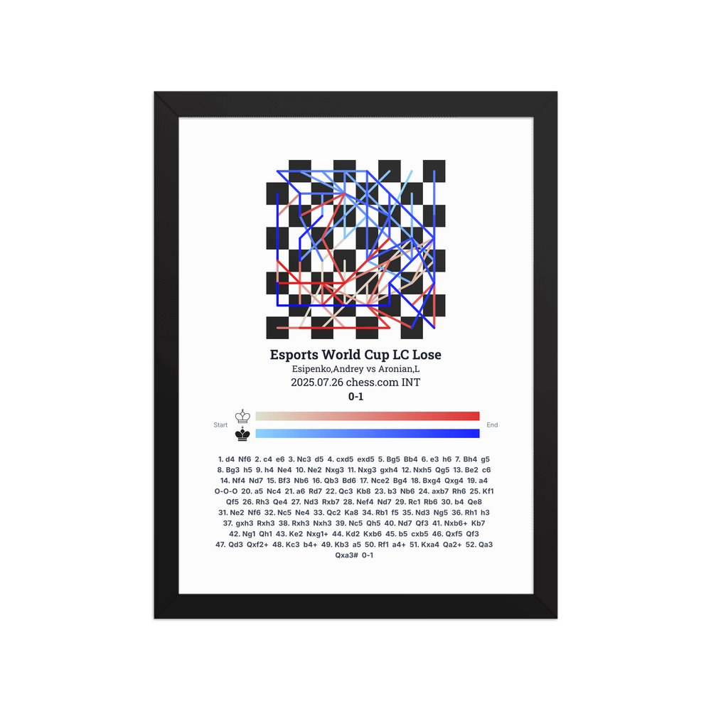 Museum-quality poster on thick, durable matte paper. A sharp, clean look for any chess visualisation.