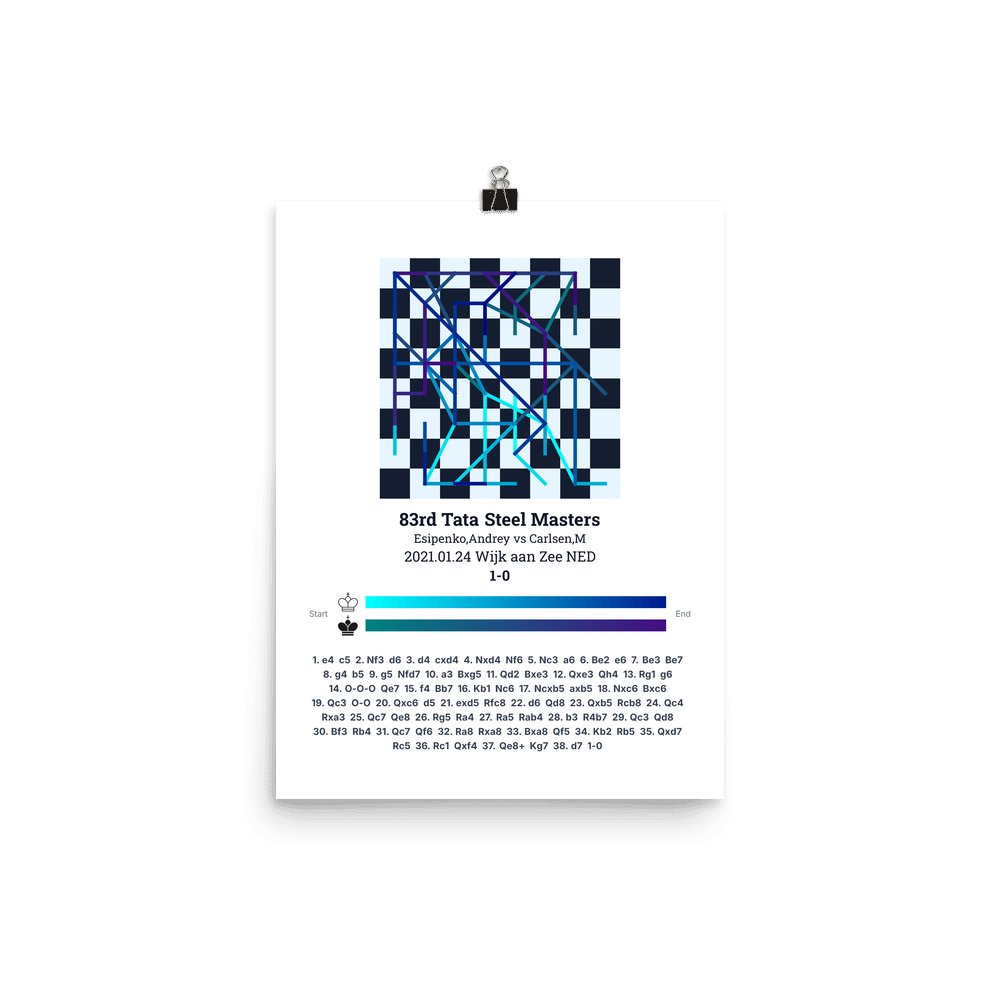 Museum-quality poster on thick, durable matte paper. A sharp, clean look for any chess visualisation.
