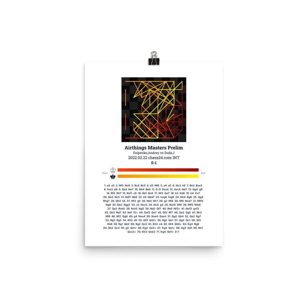 Museum-quality poster on thick, durable matte paper. A sharp, clean look for any chess visualisation.