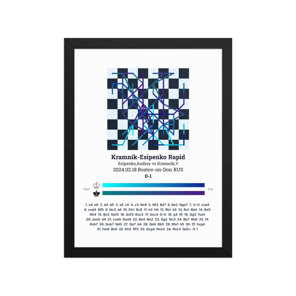 Museum-quality poster on thick, durable matte paper. A sharp, clean look for any chess visualisation.
