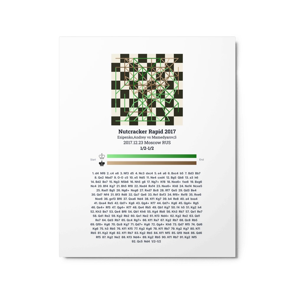 Museum-quality poster on thick, durable matte paper. A sharp, clean look for any chess visualisation.