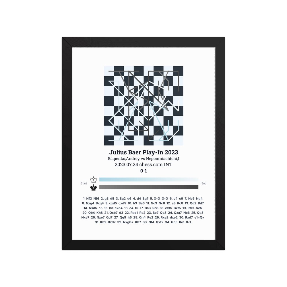 Museum-quality poster on thick, durable matte paper. A sharp, clean look for any chess visualisation.