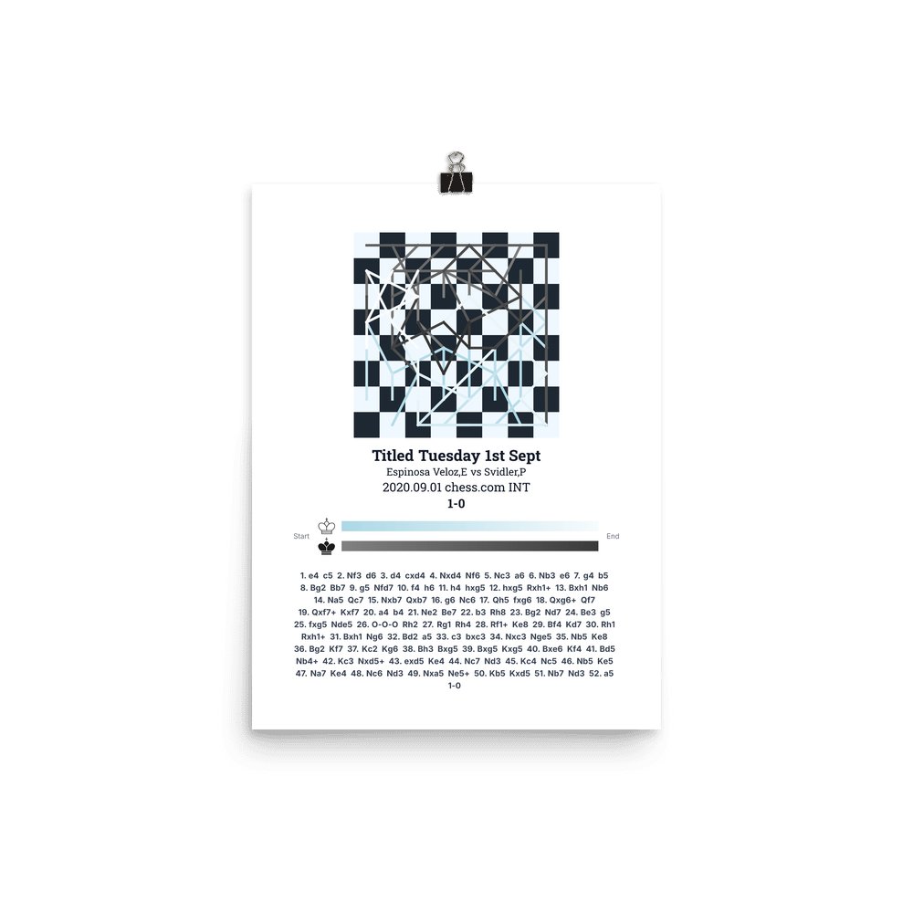 Museum-quality poster on thick, durable matte paper. A sharp, clean look for any chess visualisation.