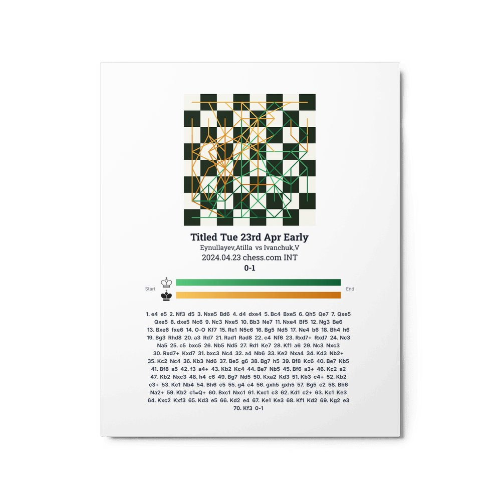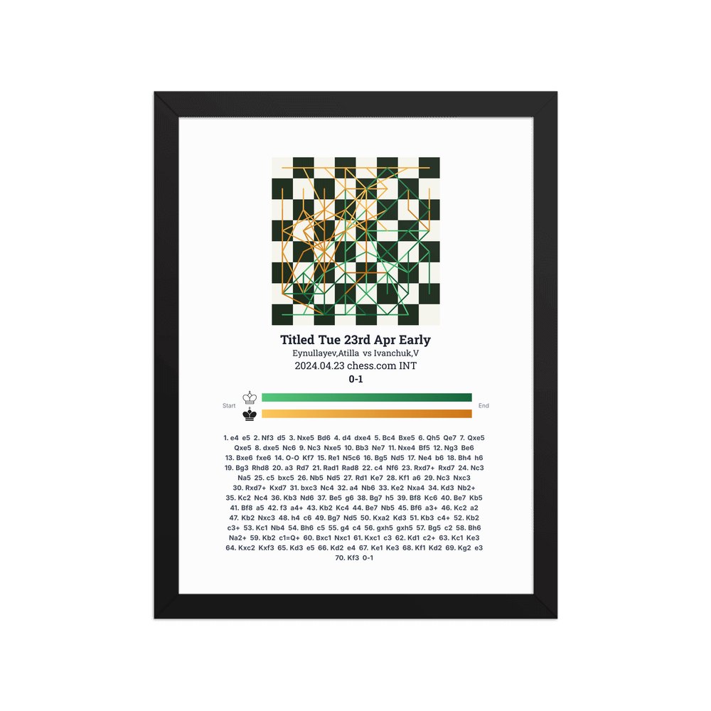 Museum-quality poster on thick, durable matte paper. A sharp, clean look for any chess visualisation.