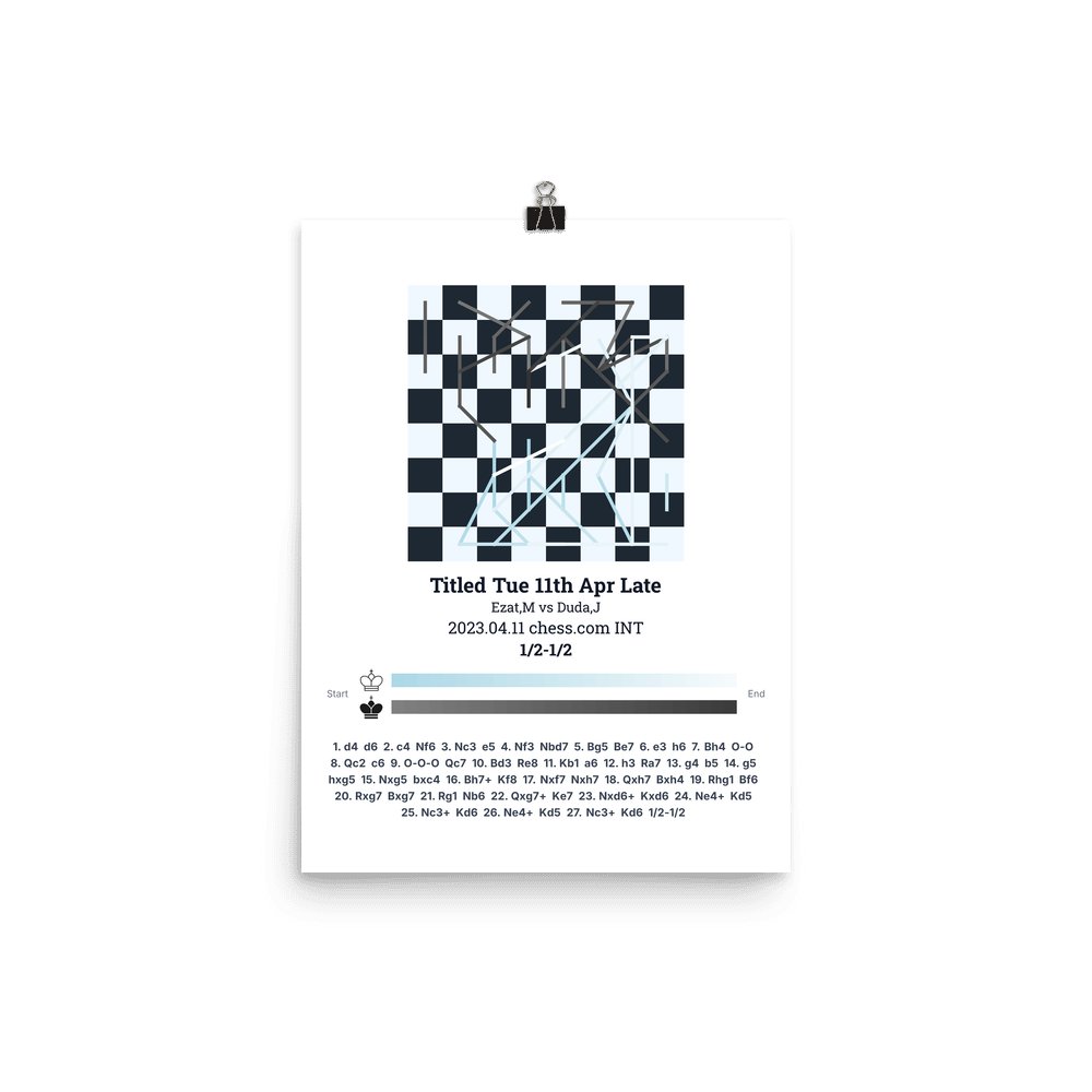 Museum-quality poster on thick, durable matte paper. A sharp, clean look for any chess visualisation.