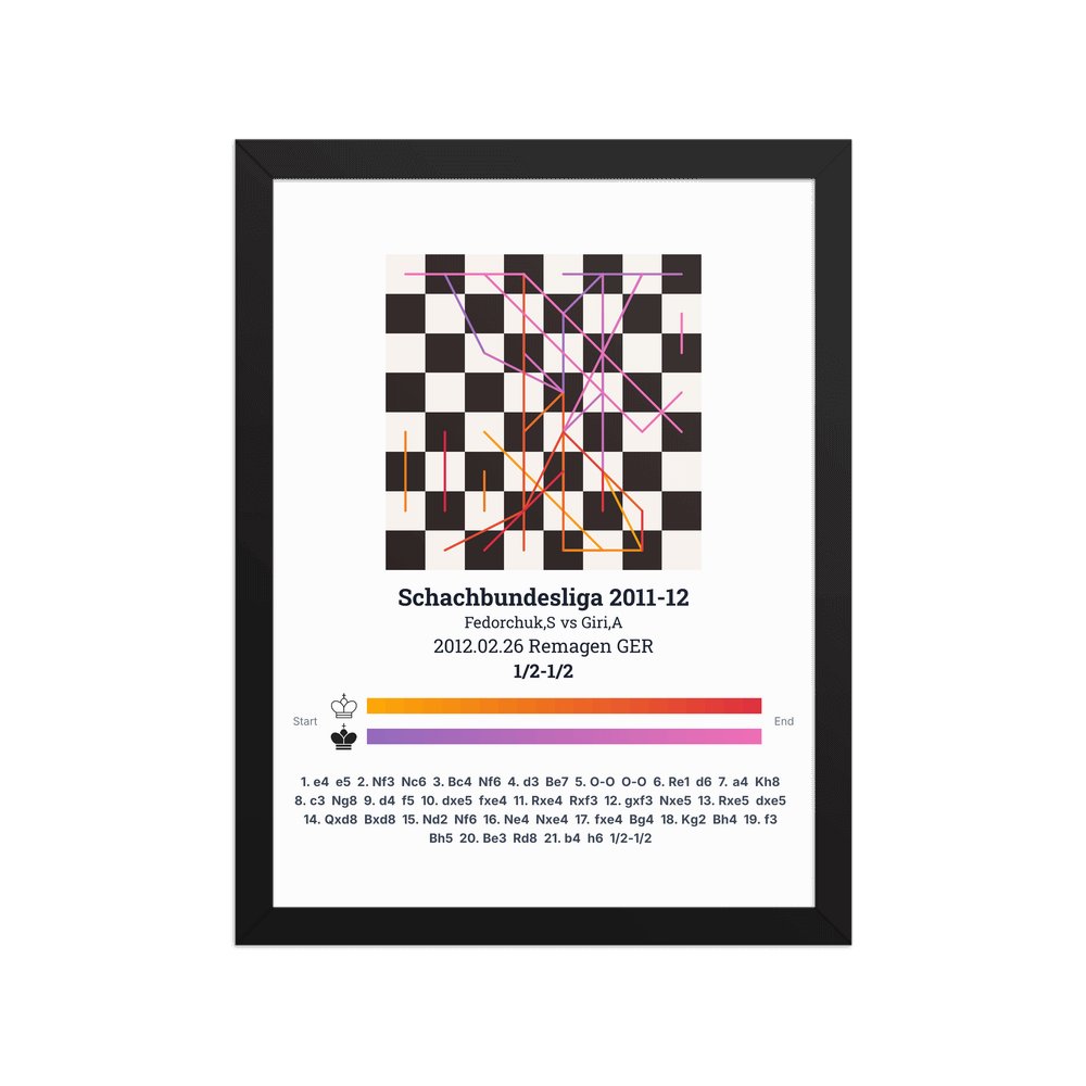 Museum-quality poster on thick, durable matte paper. A sharp, clean look for any chess visualisation.