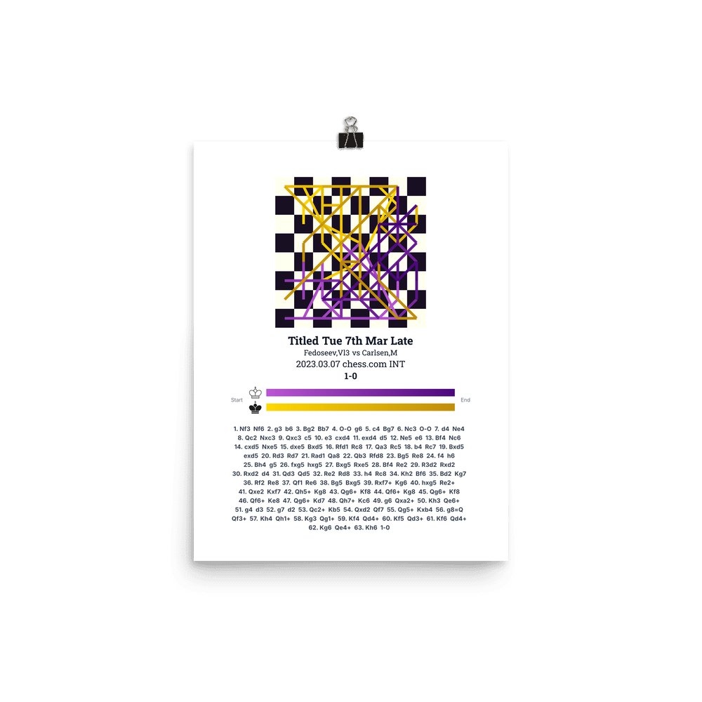 Museum-quality poster on thick, durable matte paper. A sharp, clean look for any chess visualisation.
