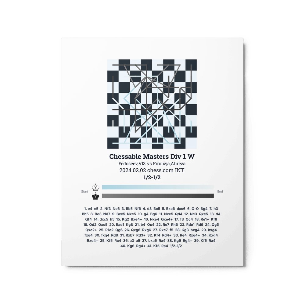 Museum-quality poster on thick, durable matte paper. A sharp, clean look for any chess visualisation.