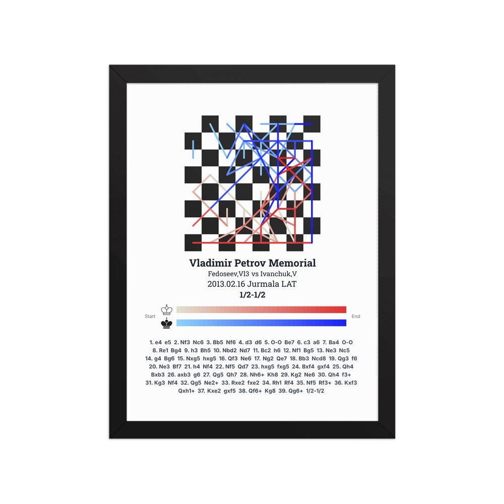 Museum-quality poster on thick, durable matte paper. A sharp, clean look for any chess visualisation.
