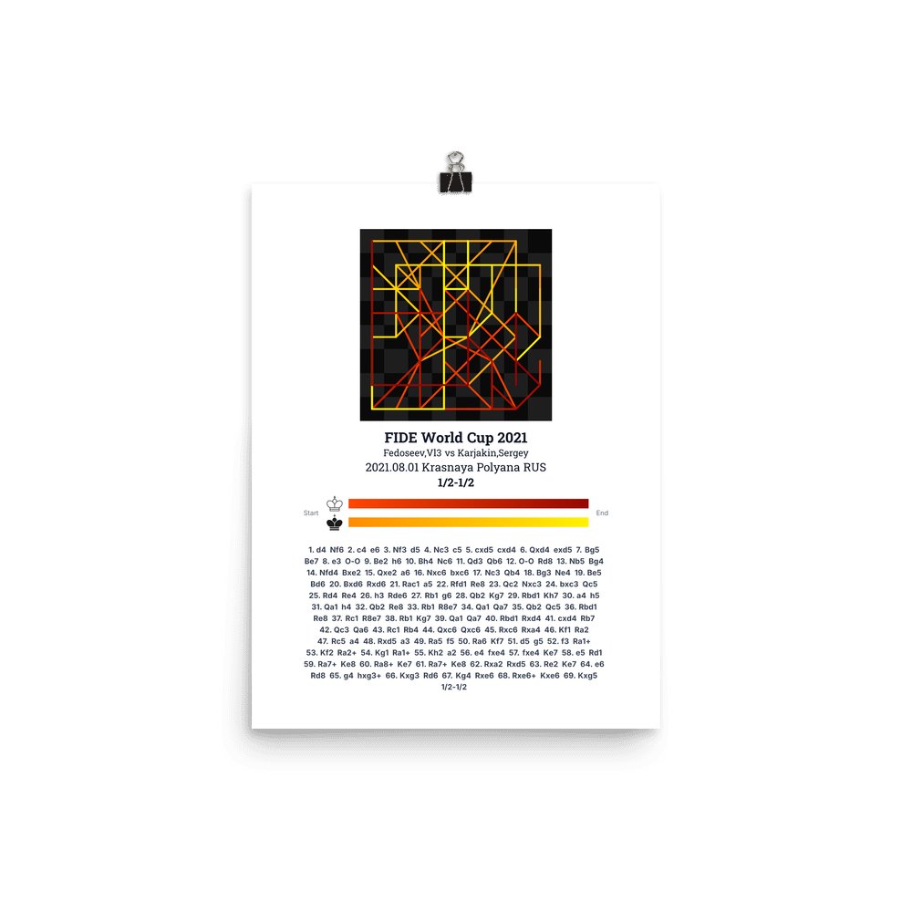 Museum-quality poster on thick, durable matte paper. A sharp, clean look for any chess visualisation.