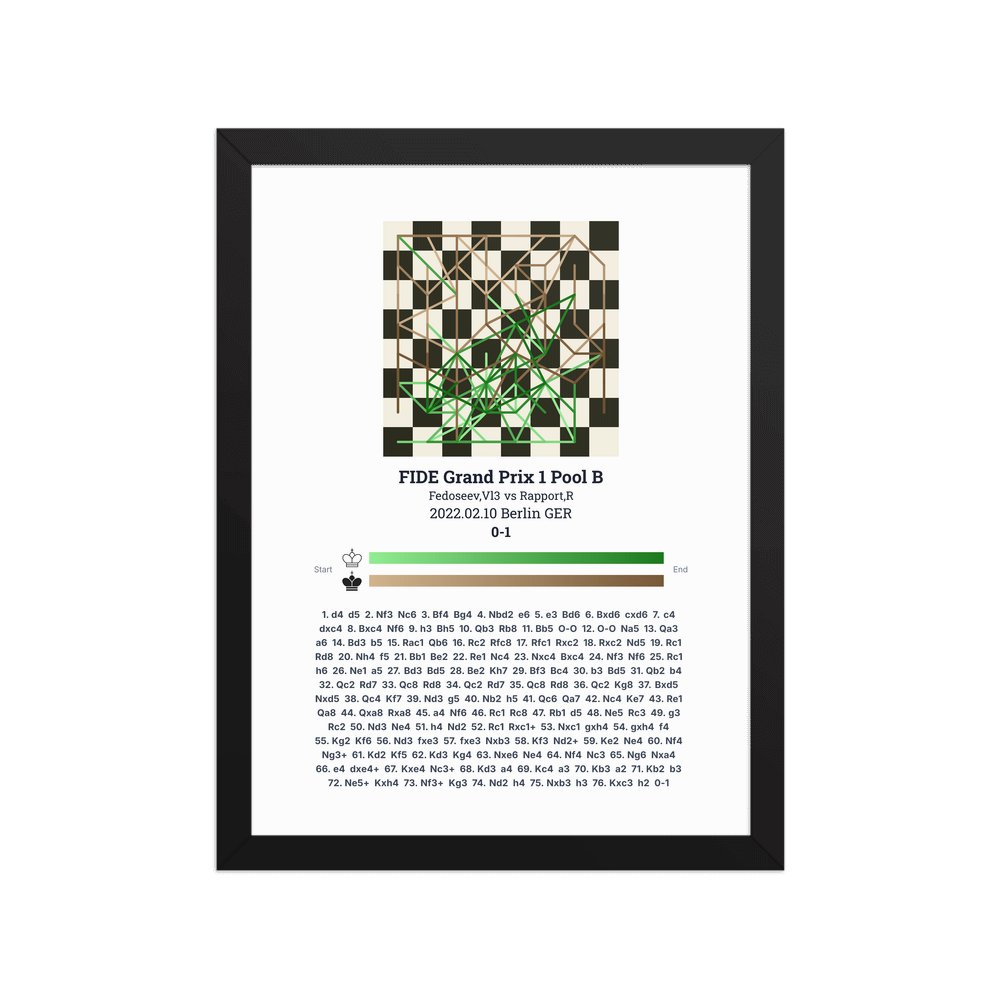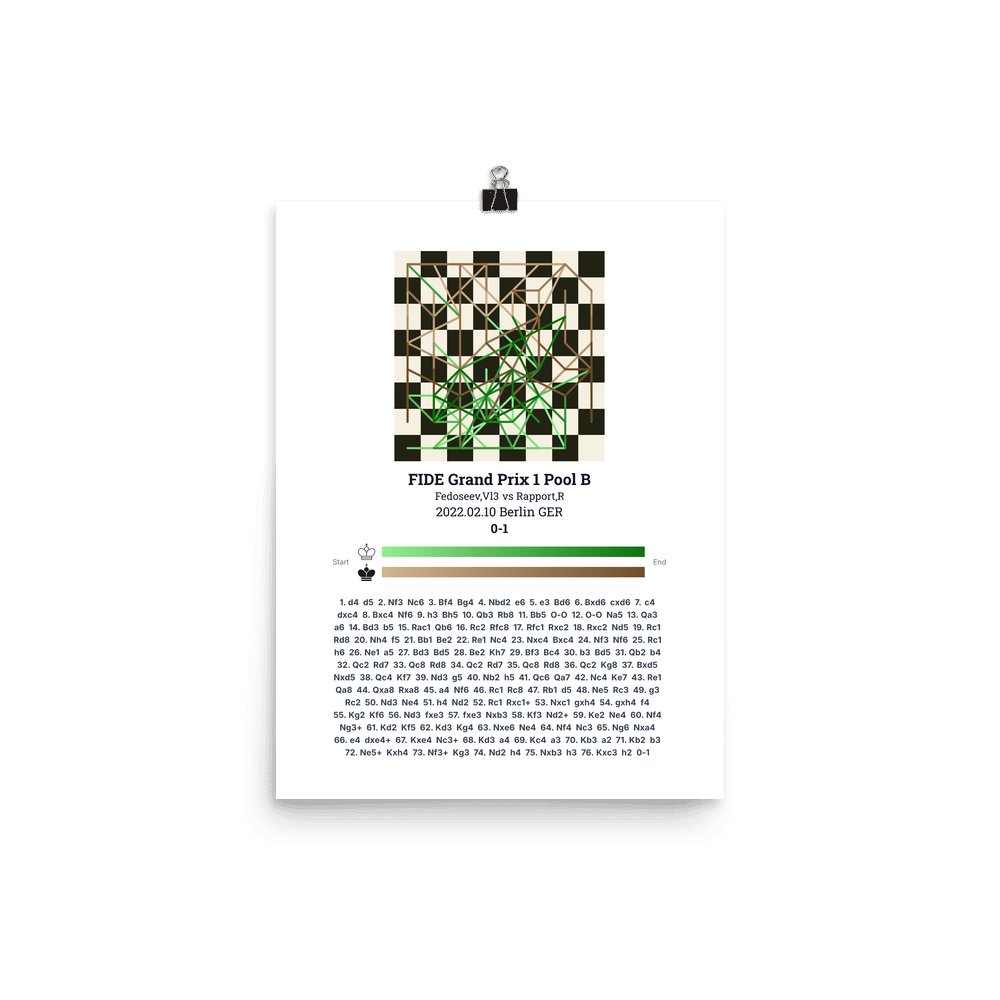 Museum-quality poster on thick, durable matte paper. A sharp, clean look for any chess visualisation.