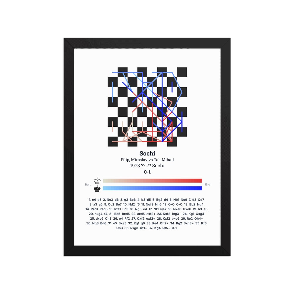 Museum-quality poster on thick, durable matte paper. A sharp, clean look for any chess visualisation.