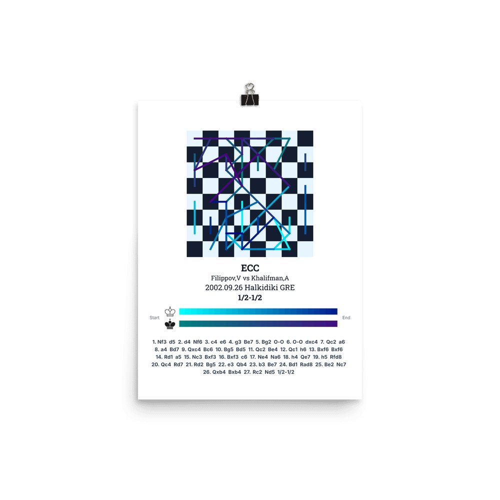 Museum-quality poster on thick, durable matte paper. A sharp, clean look for any chess visualisation.
