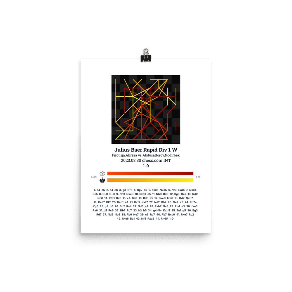Museum-quality poster on thick, durable matte paper. A sharp, clean look for any chess visualisation.