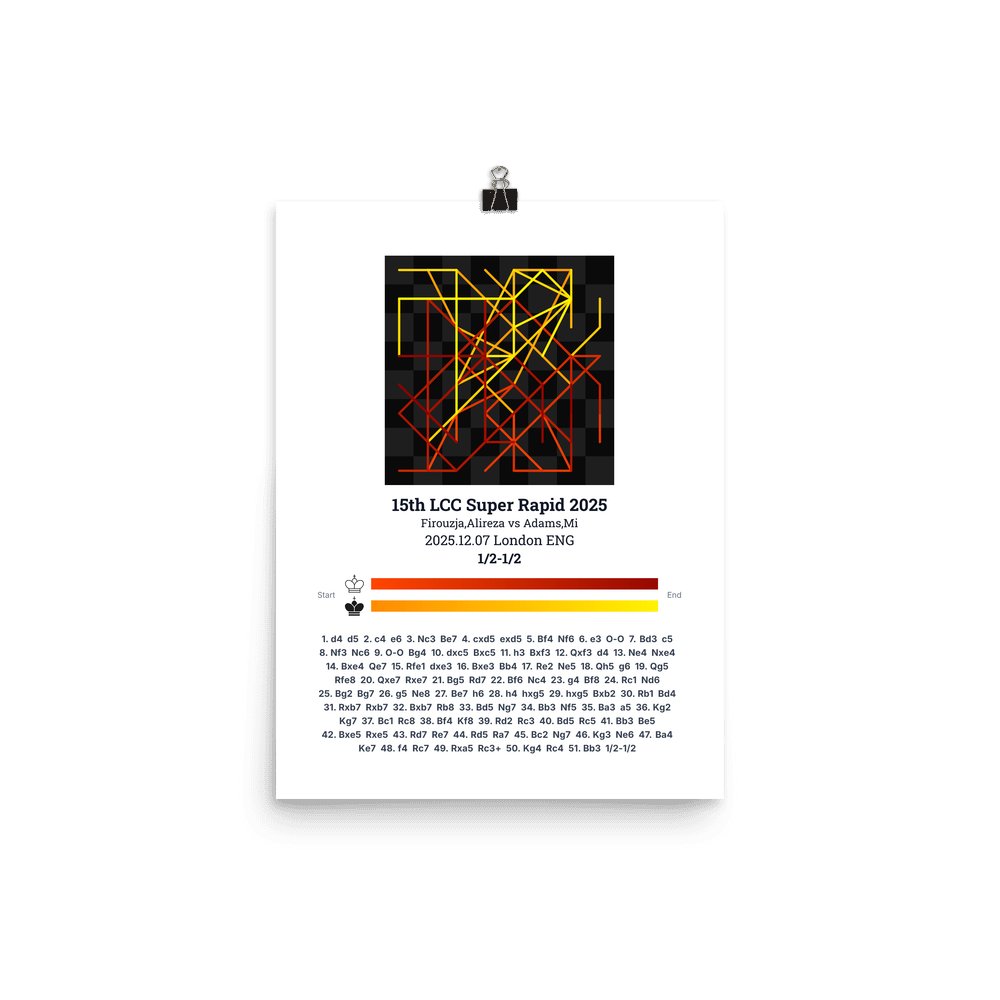 Museum-quality poster on thick, durable matte paper. A sharp, clean look for any chess visualisation.