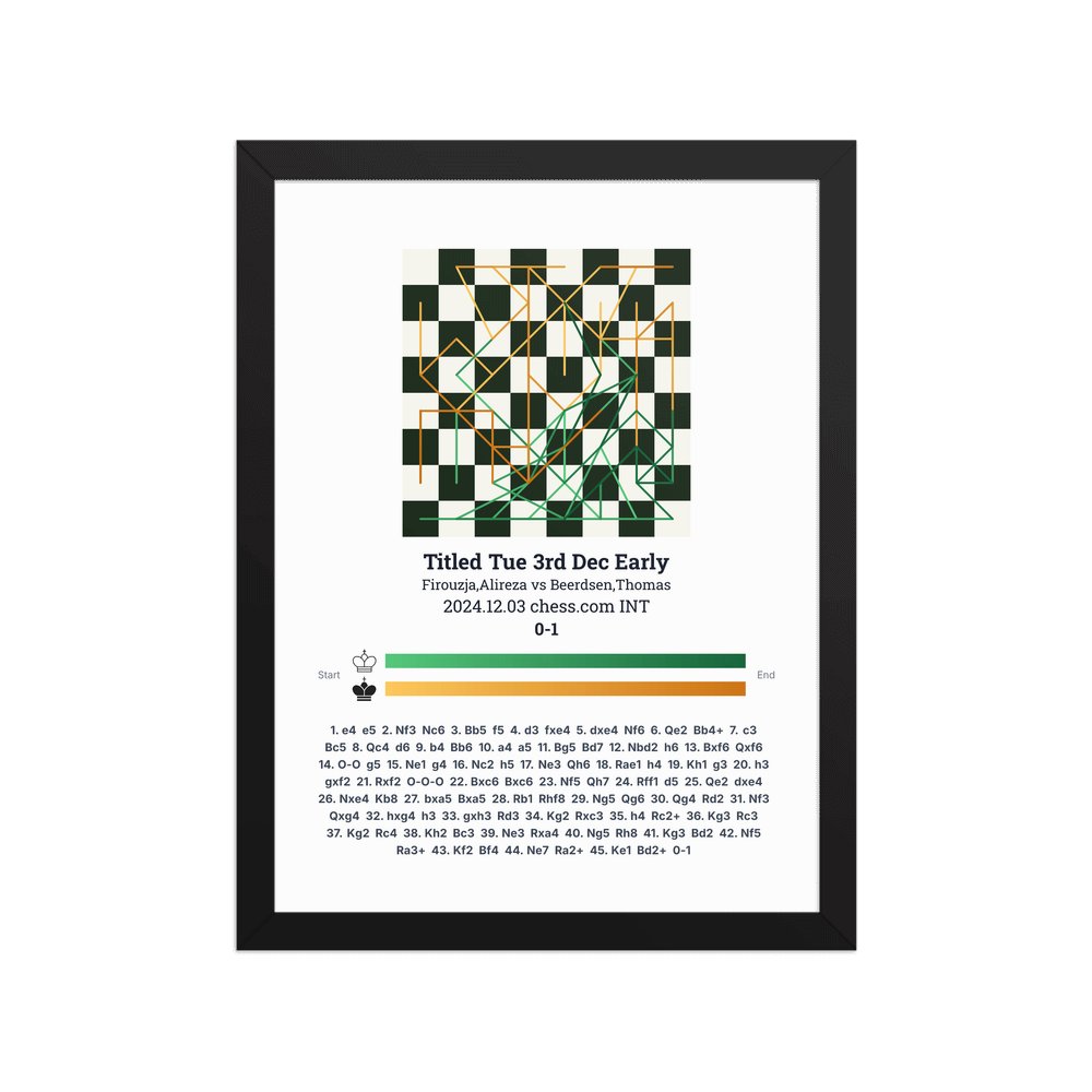 Museum-quality poster on thick, durable matte paper. A sharp, clean look for any chess visualisation.